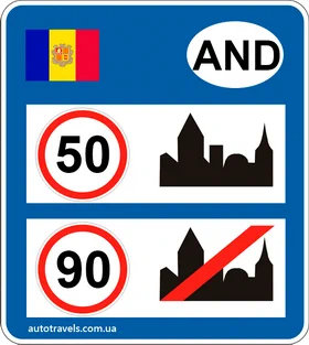 Стандартні обмеження швидкості в Андоррі (якщо інше не вказано на знаках).
