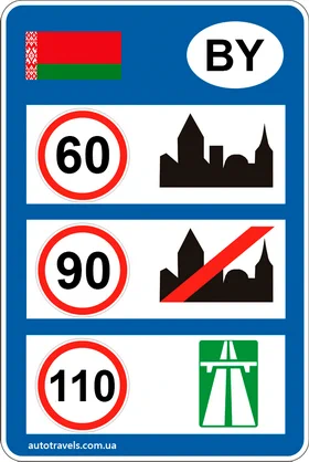 Стандартні обмеження швидкості в Білорусі (якщо інше не вказано на знаках).