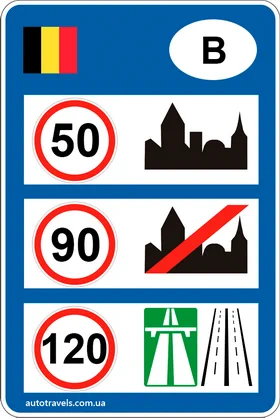 Стандартні обмеження швидкості в Бельгії (якщо інше не вказано на знаках).
