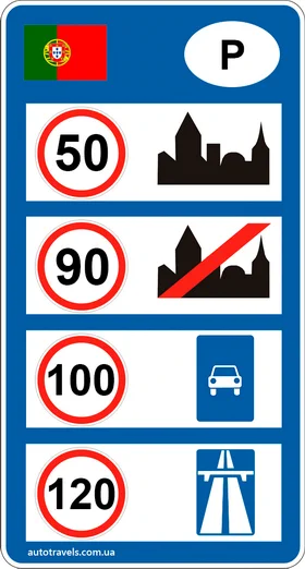 Стандартні обмеження швидкості в Португалії (якщо інше не вказано на знаках).