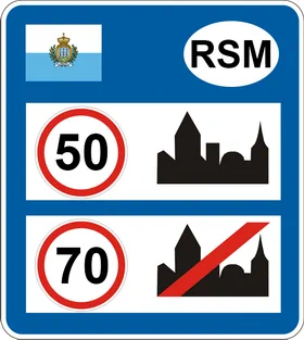 Стандартні обмеження швидкості в Сан-Марино (якщо інше не вказано на знаках).