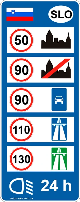 Стандартні обмеження швидкості в Словенії (якщо інше не вказано на знаках).