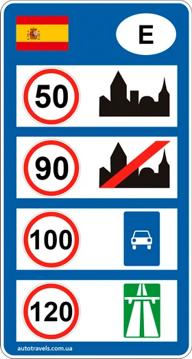Стандартні обмеження швидкості в Іспанії (якщо інше не вказано на знаках).