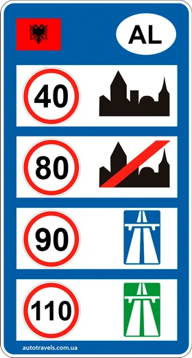 Standard speed limits in Albania (unless indicated otherwise on signs).
