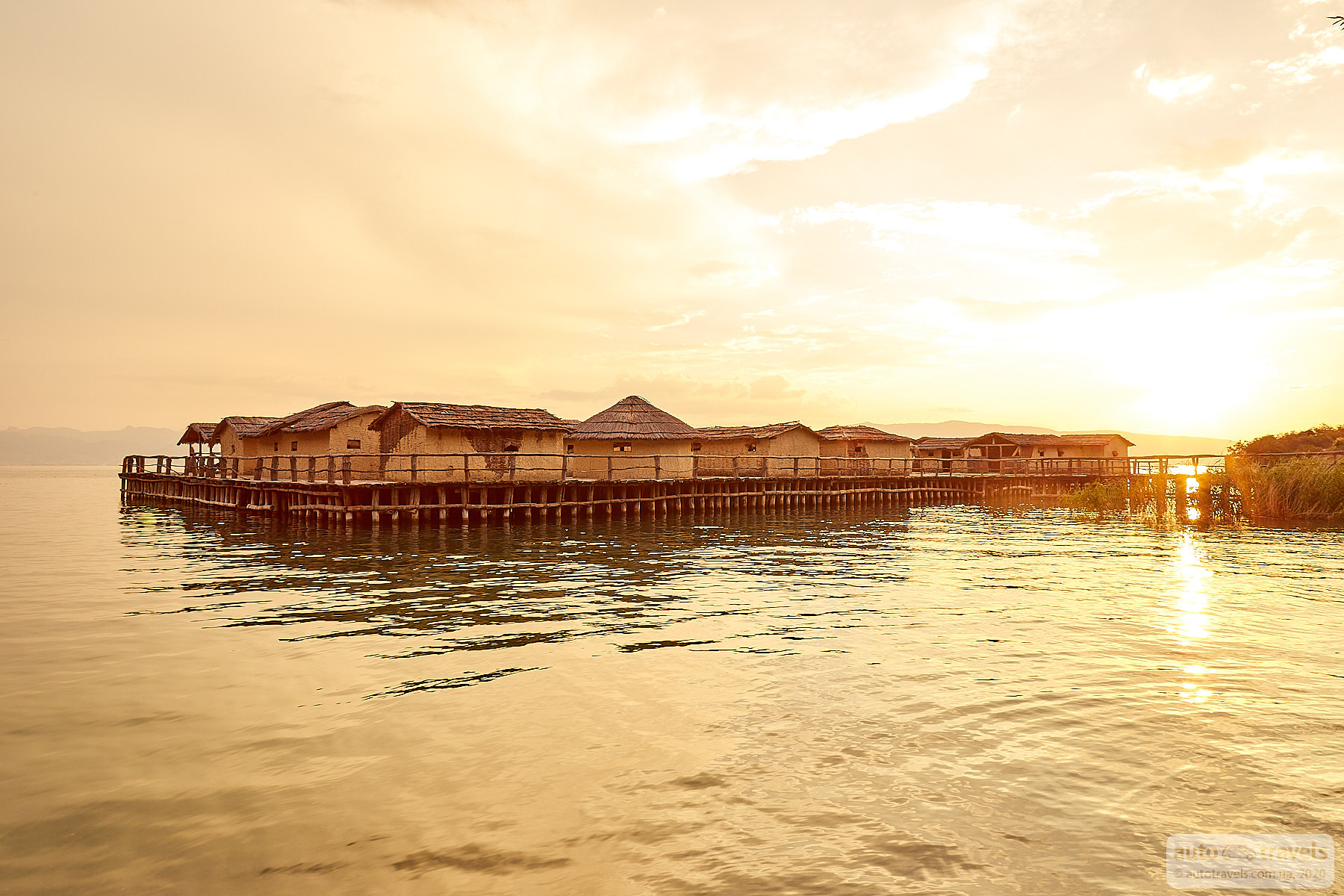 An ancient settlement standing on stilts in the water. The houses are coated with clay and straw. Nothing particularly special, but the settlement looks more interesting from the shore in good weather. There is not much of interest inside the settlement. However, the road from Ohrid to the settlement runs along the lake shore, with very picturesque spots. Sometimes, you just stop and take in the views. It's especially beautiful during sunset.