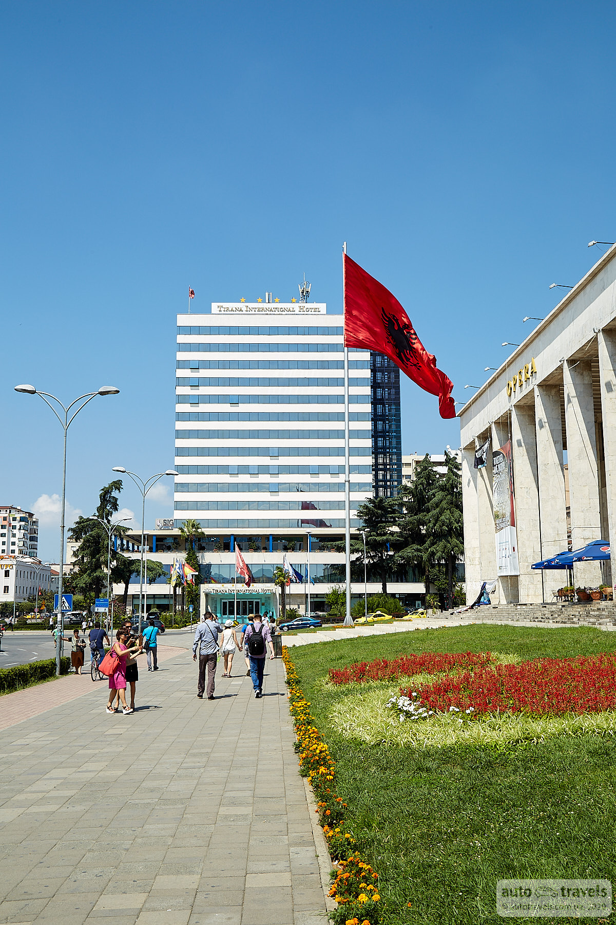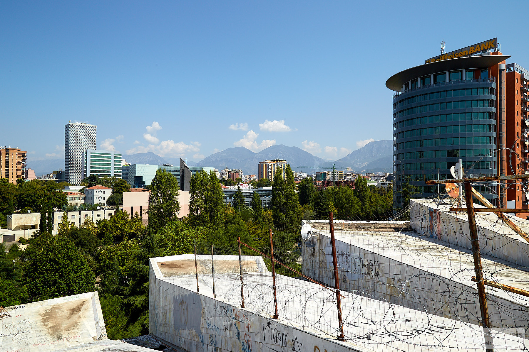 It's worth taking a stroll through the city center. If you find yourself in the city in the evening or at night, be sure to walk around. The traffic lights with full-height illumination and the unusual street lighting are interesting. You can enjoy very cheap and delicious ice cream; three scoops cost around 1 euro. During the day, you can climb the pyramid, which offers a panoramic view of almost the entire city. However, climbing is at your own risk, and it's advisable to wear sneakers with non-slip soles. To the north-east of the city, there is Mount Dajti, which you can reach by cable car. Unfortunately, there wasn't enough time during the trip to ascend the mountain. Hotels in the city center might be located in quirky alleys, but the friendliness of the people gives an understanding that these alleys are not as bad as they may seem.