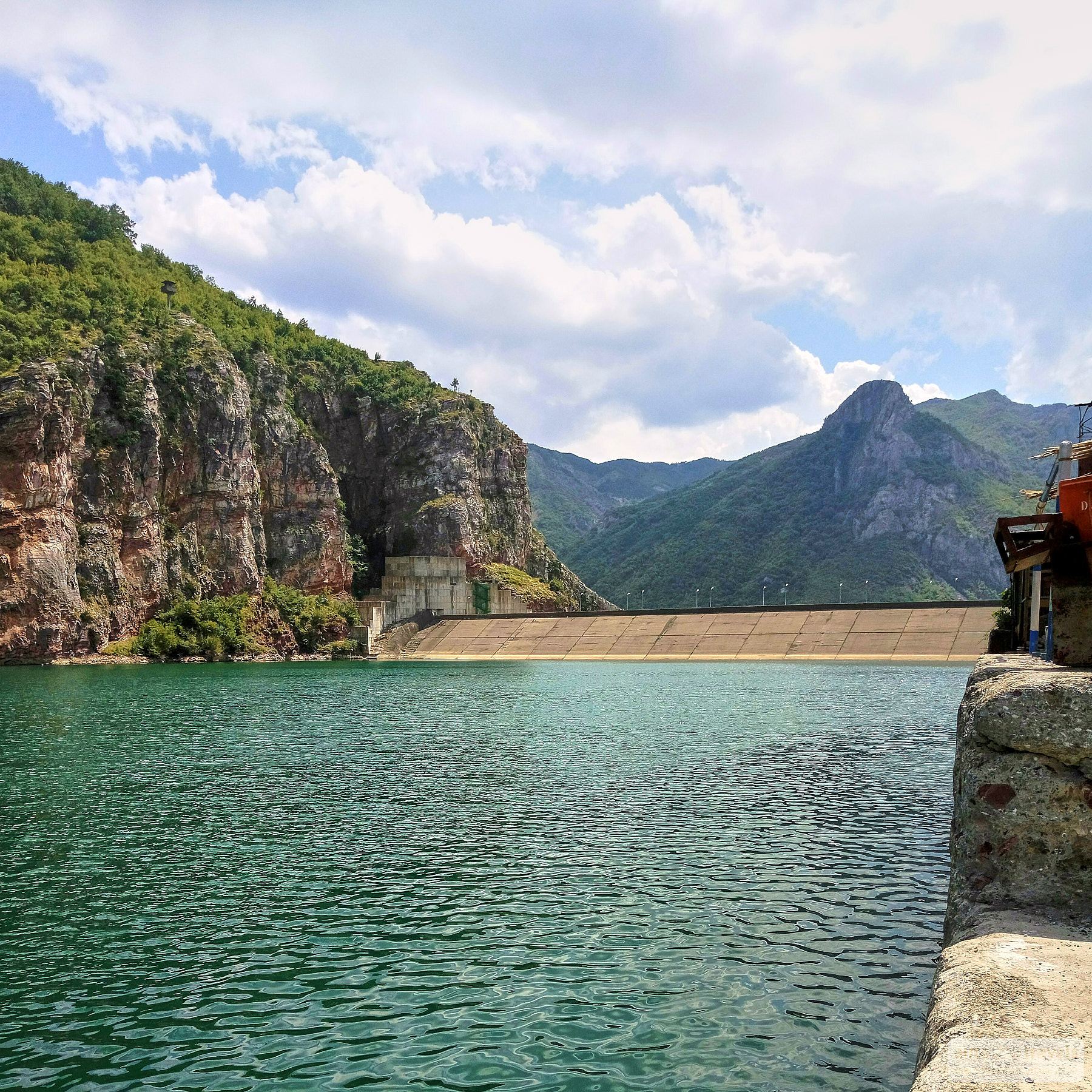 Coordinates on Google Maps: https://goo.gl/maps/VBjJdinXfzkyQuxZ9Seemingly not a touristy place, Lake Koman was formed in a mountain gorge due to the construction of a hydroelectric power station. The entrance to the lake is through a tunnel. The road to the lake runs along the gorge, where nature remains untouched, with a river flowing at the bottom, prompting stops at almost every turn to admire it all. The road back encountered two cars with Ukrainian license plates, so this place is somewhat known. The road is of poor quality, partly unpaved, and after the trip, the entire car will be covered in dust.