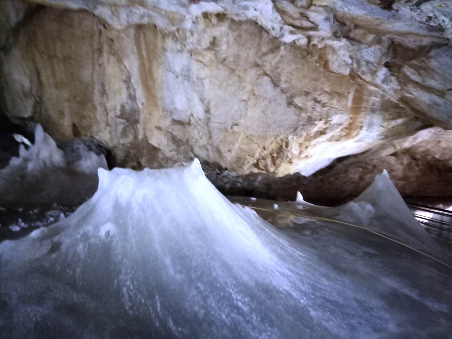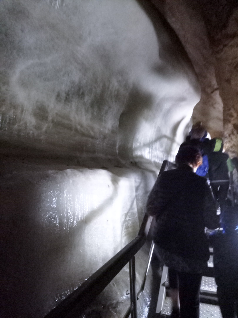 The Ice Cave. The temperature is constantly below freezing. Be sure to bring warm clothes, a jacket, sweater, considering that you will need to be in temperatures below zero for 40 minutes. The ascent to the cave takes 20-30 minutes. At the entrance to the cave, there is a large building with ticket counters and a waiting area. Below the waiting area, there are free toilets (the ones near the parking lot are paid). Inside the cave, you'll be surrounded by ice and rocks. It's a unique experience. Separate permission is required for photography. We recommend visiting, although the quality of the photos is not very good as we did not have a camera with us.