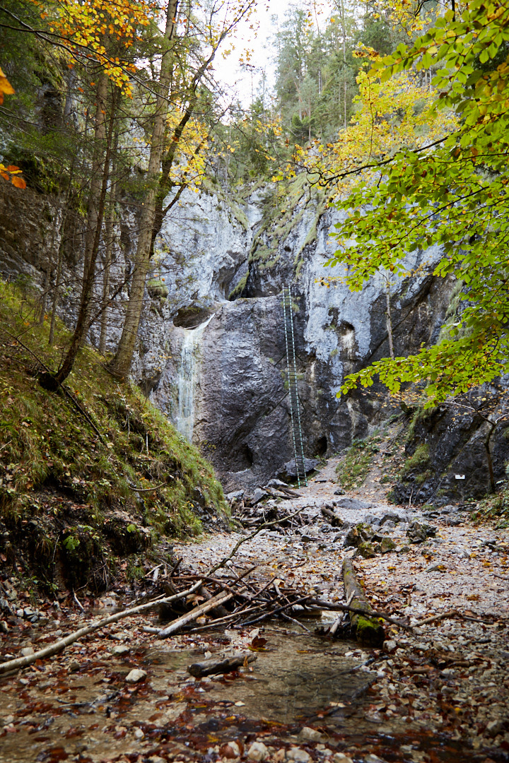 This is where the Piecky route to one of the highest waterfalls, Veľký Vodopád, starts (https://goo.gl/maps/pMfKEGK9ZfmL7CxC7). Although this route is a bit shorter, it is considered more challenging than Suchá Belá. However, it is very easy to walk from the village of Píla to the large waterfall, almost without gaining height, just constantly crossing the river on stones. It takes about 30 minutes to reach the waterfall. If you climb the ladder along the waterfall, you will see a cascade waterfall that caught our attention and led us to Slovak Paradise.